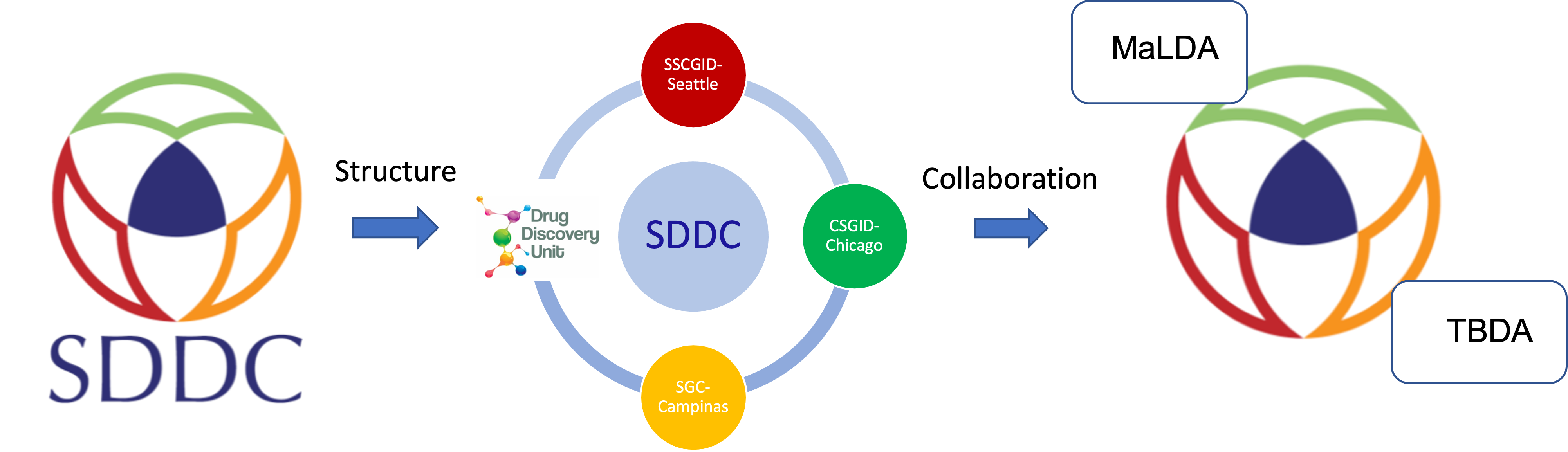 SDDC (Structure guided Drug Discovery Coalition) is an international collaboration led by the Drug Discovery Unit (DDU-Dundee) at the University of Dundee-Scotland with researchers from the University of Washington, Seattle (SSCGID-Seattle), USA, the University of Chicago (CSBID-Chicago) , USA and University of Campinas (Centre of Medicinal Chemistry-UNICAMP), Brazil. The coalition was granted $5M over the next 3 years (2Q 2024) by the Bill & Melinda Gates Foundation.